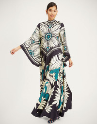 Shouldn't every babe have a dress called the Magnifico hanging in her closet? La DoubleJ believes so! With a stand-up collar, long sash at the back and draped waterfall sleeves, this special number will glide you around the room with an ease and an elegance reserved for the most exclusive of occasions. Cut in Como-made silk it arrives in this beguiling hand-placed print brimming with mystique and allure, destined for a decadent palazzo party and perfect for mediumalists and maximalists alike. Details & Fit - Silk twill - Hand-placed print - Stand-up collar - Back sash at neck - Maxi length - Waterfall sleeves - 100% Made in Italy - Composition: 100% Silk - The model is 179 cm tall and wears a size S - Garment length: 140cm