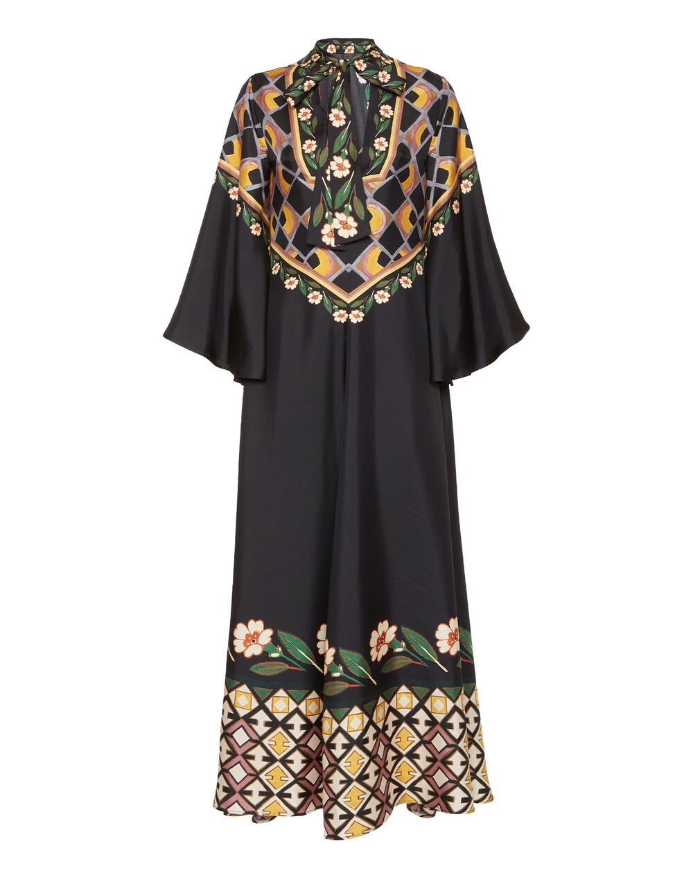 Shouldn't every babe have a dress called the Magnifico hanging in her closet? La DoubleJ believes so! With a stand-up collar, long sash at the back and draped waterfall sleeves, this special number will glide you around the room with an ease and an elegance reserved for the most exclusive of occasions. Cut in our Como-made silk twill with a subtle sheen, it arrives just in time for party season in this truly stunning Grenadilla print which is placed by Italian artisan hands. Go on baby, be beguiling. Details & Fit - Silk twill - Hand-placed print - Stand-up collar - Back sash at neck - Maxi length - Waterfall sleeves - 100% Made in Italy - Composition: 100% Silk - The model is 180 cm / 5′ 11″ tall and wears a size S