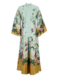long-sleeve maxi dress Highlights - Light blue - Floral print - Long sleeves - High neck - Tie detail Made in Italy Composition Silk 100% Washing instructions Machine Wash