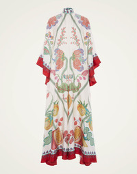 Shouldn't every babe have a dress called the Magnifico hanging in her closet? La DoubleJ believes so! With a stand-up collar, long sash at the back and draped waterfall sleeves, this special number will glide you around the room with an ease and an elegance reserved for the most exclusive of occasions. Cut in our Como-made silk twill with a subtle sheen, it arrives just in time for party season in this truly stunning Grenadilla print which is placed by Italian artisan hands. Go on baby, be beguiling. Details & Fit - Silk twill - Hand-placed print - Stand-up collar - Back sash at neck - Maxi length - Waterfall sleeves - 100% Made in Italy - Composition: 100% Silk - The model is 179 cm tall and wears a size S - Garment length: 140cm