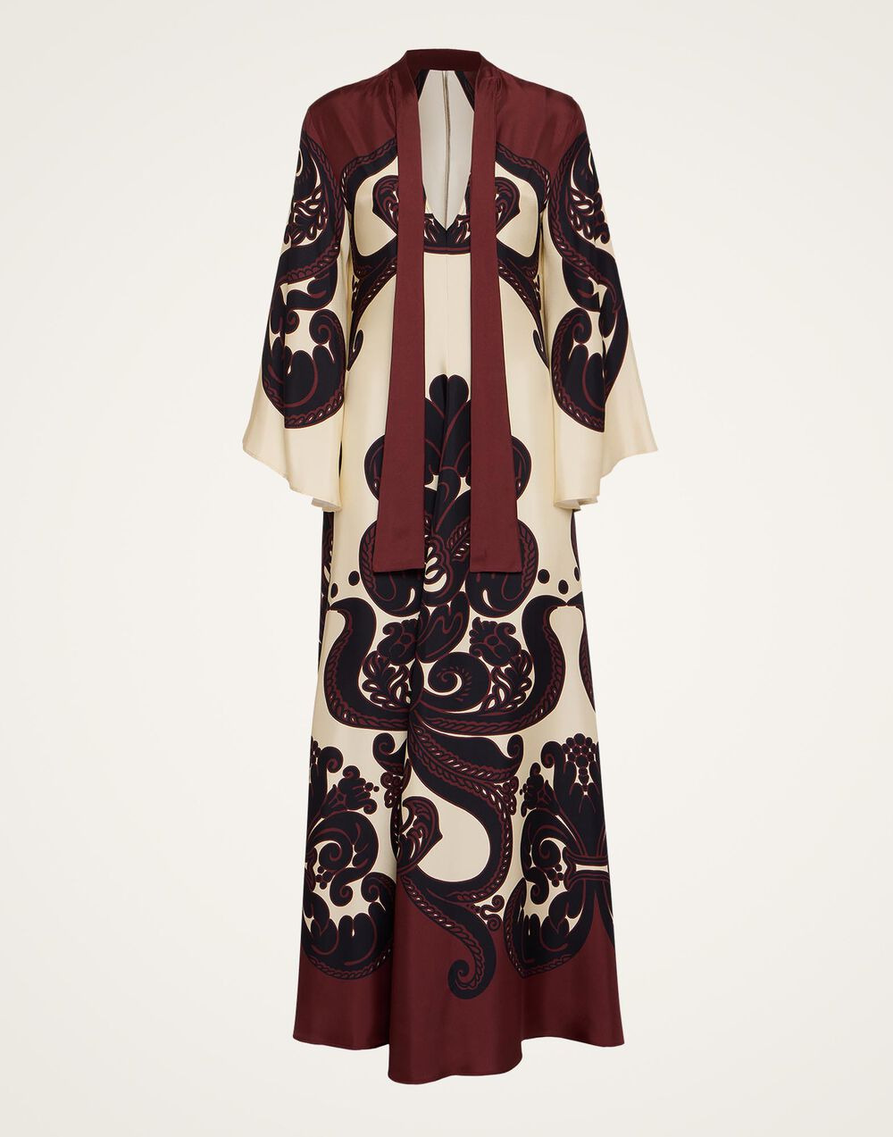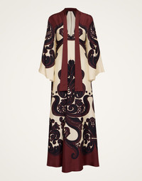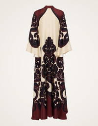 Shouldn't every babe have a dress called the Magnifico hanging in her closet? La DoubleJ believes so! With a stand-up collar, long sash at the back and draped waterfall sleeves, this special number will glide you around the room with an ease and an elegance reserved for the most exclusive of occasions. Cut in our Como-made silk twill with a subtle sheen, it arrives just in time for party season in this truly stunning Grenadilla print which is placed by Italian artisan hands. Go on baby, be beguiling. Details & Fit - Silk twill - Hand-placed print - Stand-up collar - Back sash at neck - Maxi length - Waterfall sleeves - 100% Made in Italy - Composition: 100% Silk