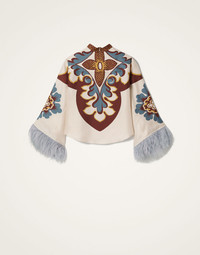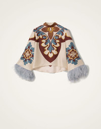 If a top could be a tease, this one would be it. Deceptively demure in the front with a high neck and easy A-line shape through the body, it’s the back of this beauty that truly wows, with a cape-like high-low back that floats as you turn. This silk twill iteration with feather-dipped sleeves has date night drama written all over it. Throw it under a gilet or our Folk Jacket for bohemian flare, or with our Milano Skirt for a super chic silhouette. Details & Fit - Silk - Feathers on the sleeves - High neck - A-line shape body - Shorter in front, longer in the back - 100% Made in Italy - Composition: 98% Silk 2% Ostrich Feathers - The model is 178 cm / 5′ 10″ tall and wears a size S
