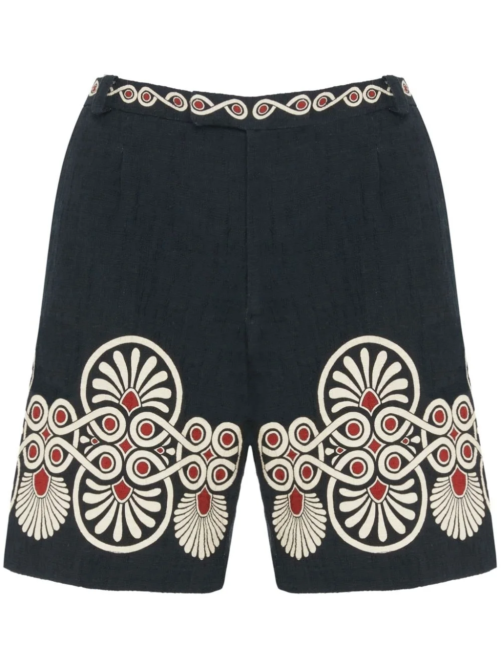 Medallion-print cotton shorts Highlights - Black/multicolour - Cotton - Geometric-pattern print - Poplin texture - Belt loops - Concealed front fastening - High-waisted - Straight leg - Two rear welt pockets - Thigh-length Made in Italy Composition Cotton 100%