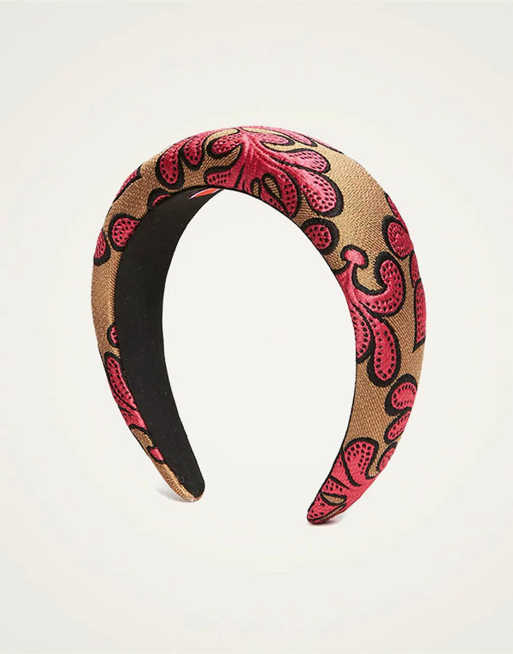 The Medici family were arguably the greatest patrons and celebrators of art and architecture during the Renaissance, as close to Italian royalty as you can get. Naturally, we had to craft a crown-like headband inspired by them, a soft structure crafted in jacquard, faille and sumptuous silk twill. Gorgeous as the final touch to an already dramatic Magnifico Dress moment, we love her with a tee and jeans as a divine feminine touch. Details & Fit - Jacquard - Cushioned band - One size - 100% Made In Italy - Composition: 74% Polyester 9% Wool 9% Acrylic 5% Silk 3% Polyamide