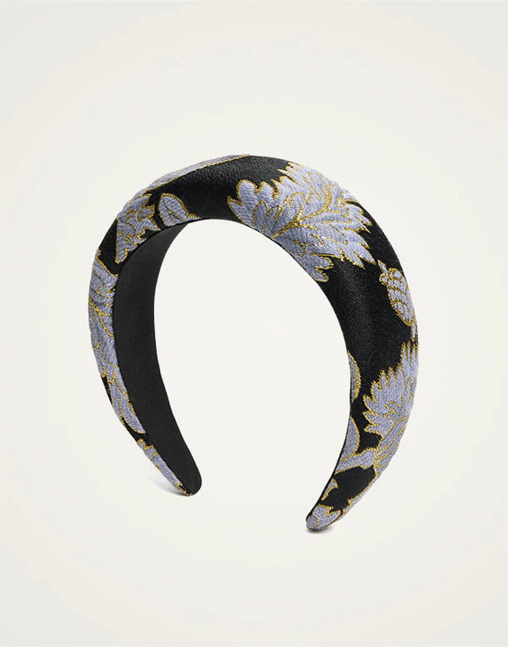 The Medici family were arguably the greatest patrons and celebrators of art and architecture during the Renaissance, as close to Italian royalty as you can get. Naturally, we had to craft a crown-like headband inspired by them, a soft structure crafted in jacquard, faille and sumptuous silk twill. Gorgeous as the final touch to an already dramatic Magnifico Dress moment, we love her with a tee and jeans as a divine feminine touch. Details & Fit - Jacquard - Cushioned band - One size - 100% Made In Italy - Composition: 42% Polyester 22% Wool 22% Acrylic 8% Other Fibers 6% Silk