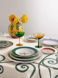 La DoubleJ's punchy patterns will brighten up any dinner party. This colorful tablecloth is made from Italian linen that's patterned with swirls, stripes and dots. Make it really pop with the brand's vibrant tableware.