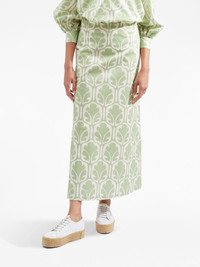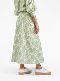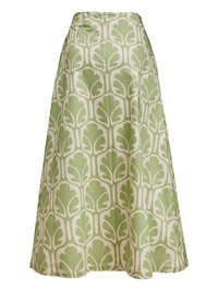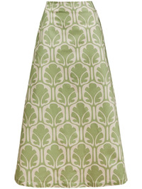 mid-rise printed midi A-line skirt olive green/ivory white abstract pattern print stretch-cotton mid-rise ankle-length A-line concealed rear zip fastening two side slit pockets Made in Italy Composition Cotton 97%, Elastane 3%