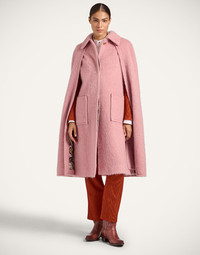 If the mysterious magic of Milan could be captured in a garment, this would be it. The drama is in the details of this romantic cape, which arrives with two exaggerated slits down the side so you can still carry your favorite designer bag with you to your night out at the opera. That perfect pink shade! That shaggy wool! That printed lining! The Milanese love a statement coat any time of day but feel free to enjoy this beauty as you please. Details & Fit - Long cape hits at mid calf - Slits through sides for hand accessibility - Contrast print lining - Gold toggle clasps down front - Built-in gilet - 100% Made in Italy - Composition: 55% Wool 25% Polyamide 10% Alpaca Wool 10% Mohair - Garment length: 112cm - The model is 176 cm / 5′ 9″ tall and wears a size S