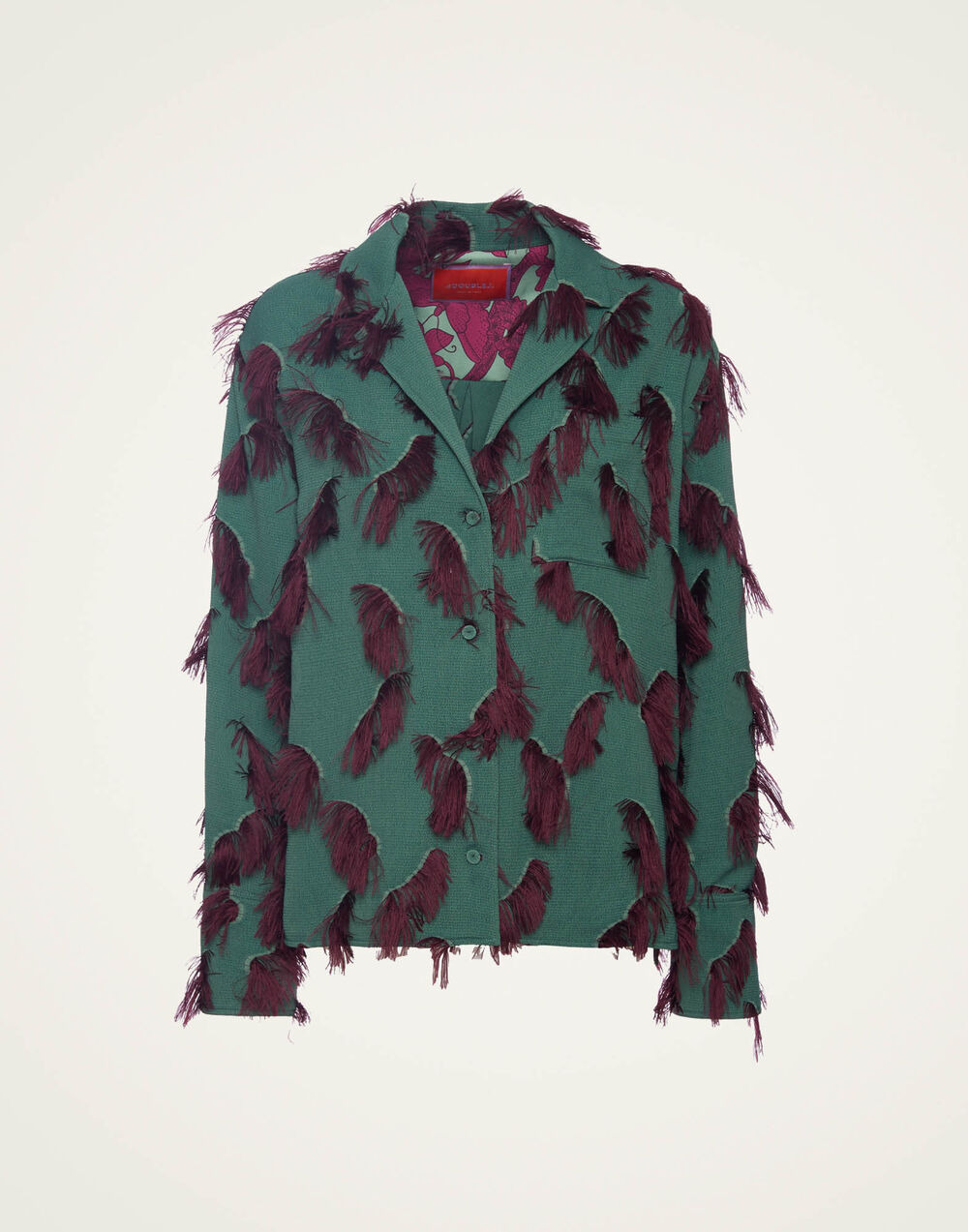 We love our bestselling Milano Cape so much, we knew we had to make a Jacket to complement it’s incomparably chic structure. Same buttoned cuffs, structured collar and tailored fold in the back. Same timeless slightly masculine silhouette which pairs perfectly with our Milano Shirt (obvs) but also with a plain white tee and your favourite DoubleJ Denim. Details & Fit - Fil coupe - Boxy shape - Patch pocket - Collar - Buttons at cuffs - Buttons down front - Fold at the back - Hems at hips - 100% Made in Italy - Composition: 47%Viscose 42%Cotton 11%Polyester - The model is 179 cm tall and wears a size S - Garment length: 70cm