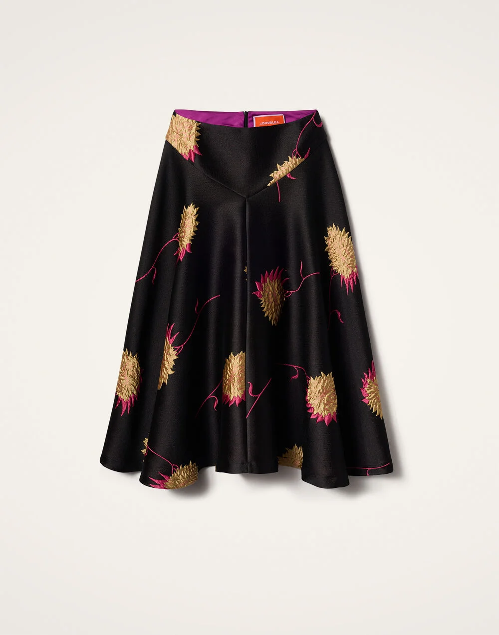 With a super flattering waistline that’ll spin you with confidence from office to aperitivo, say buongiorno to our easiest skirt yet. The Milano is a total-crowd pleaser thanks to its shaping waist (there’s a concealed zip at the back) that falls to a voluminous circle skirt. Its juicy jacquard fabrication elevates this everday closet staple.Oh and this Derby print? So darn elegant it will go with everything in your closet. Details & Fit - Sable satin - Concealed zip at back - Flattering waistband that falls to voluminous skirt - 100% Made in Italy - Composition: 83% Polyester 9% Cotton 5% Silk 3% Polyamide - The model is 178 cm / 5′ 10″ tall and wears a size S