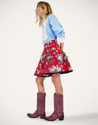 A Skatergirl skirt with a sophisticated spin, this classic silhouette comes in glorious printed jacquard with black piping all around the hem. Wear it with our No Fuss Cardigan for an oversized contrast or with tights for a sweet September-to-May look. Details & Fit - Jacquard - Mini Skirt - No pockets - hits mid thight - 100% Made in Italy - Composition: 33% Polyester 25% Cotton 22% Acrylic 9% Wool 6% Polyamide 5% Other Fibers - The model is 180 cm / 5′ 11″ tall and wears a size S
