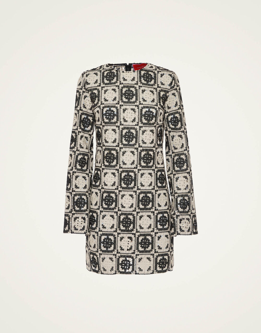 A short but chic cocktail dress ready to enter your party era. Whatever celebratory occasion you’re dressing up for this season, the Mini Supremes aims to flatter, with its long fluted sleeves and thigh-sitting silhouette expertly cut on the bias to hug in all the right places. This version arrives in our fabulously festive macrame fabrication for a timeless, flounce-ready flourish. Details & Fit - Jacquard Macrame - Hand-placed print - Round neck - Pockets - Flared sleeve - Mini hemline - 100% Made in Italy - Composition: 100% polyester - The model is 180 cm tall and wears a size S - Garment length: 80cm