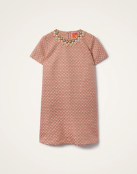 Take our signature Swing Dress, give it a generous chop and voila! You’ve got the Mini Swing. The shorter version of this easy T-shirt silhouette falls around mid-thigh, perfect for La DoubleJ’s more petite fans or for showing off your legendary legs. Made in our sumptuous embroidered jacquard, it works as well for day (with a pair of tights) as it does for night (polished pins and heels all the way). Details & Fit - Embroidered Jacquard - Slim in the shoulders, generous in the hips - Classic T-shirt silhouette - Falls into an A-line - Mini length - Hidden side slit pockets - Concealed back zipper - Garment length 80cm - Composition: 76%Polyester 24%Polyamide - 100% Made in Italy