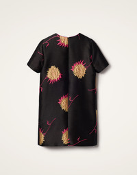 Take our signature Swing Dress, give it a generous chop and voila! You’ve got the Mini Swing. The shorter version of this easy T-shirt silhouette falls around mid-thigh, perfect for La DoubleJ’s more petite fans or for showing off your legendary legs. Made in our sumptuous jacquard, it works as well for day (with a pair of tights) as it does for night (polished pins and heels all the way). Details & Fit - Jacquard - Slim in the shoulders, generous in the hips - Classic T-shirt silhouette - Falls into an A-line - Mini length - Hidden side slit pockets - Concealed back zipper - 100% Made in Italy - Composition: 83% Polyester 9% Cotton 5% Silk 3% Polyamide - The model is 180 cm / 5′ 11″ tall and wears a size S