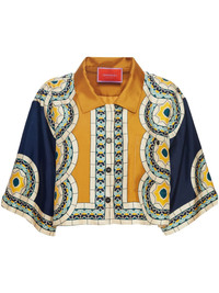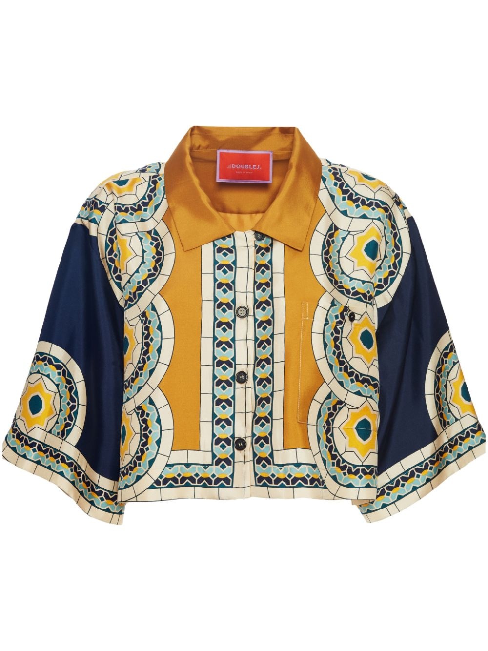 Mudejar-print silk crop shirt Highlights - Multicolour - Silk - Geometric print - Straight-point collar - Front button fastening - Drop shoulder - Short sleeves - Straight hem - Cropped Made in Italy Composition Silk 100%