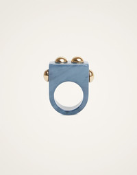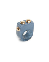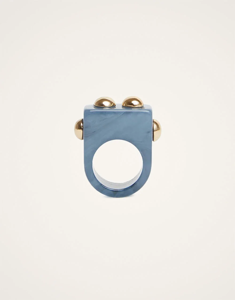 An iconic symbol of beauty and feminine power, we couldn’t think of a more fitting inspiration than the ancient Egyptian goddess Nefertiti when designing this statement jewelry piece. Crafted from solid colored resin, this oversized ring features gold studs across its rectangular band, which catch the light with every elaborate Italian gesture. Don't throw these around, amore - these delicate delights are precious. Details & Fit - Chunky rectangular ring - Colored resin with gold studs - Size "S" 17mm diameter - Size "M" 19mm diameter - Composition: 90% Resin, 10% Zamak - Made in Italy