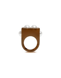 An iconic symbol of beauty and feminine power, we couldn’t think of a more fitting inspiration than the ancient Egyptian goddess Nefertiti when designing this statement jewelry piece. Crafted from solid colored resin, this oversized ring features gold studs across its rectangular band, which catch the light with every elaborate Italian gesture. Don't throw these around, amore - these delicate delights are precious. Details & Fit - Chunky rectangular ring - Colored resin with pearl studs - Size "S" 17mm diameter - Size "M" 19mm diameter - Composition: 90% Resin, 10% Zamak - Made in Italy