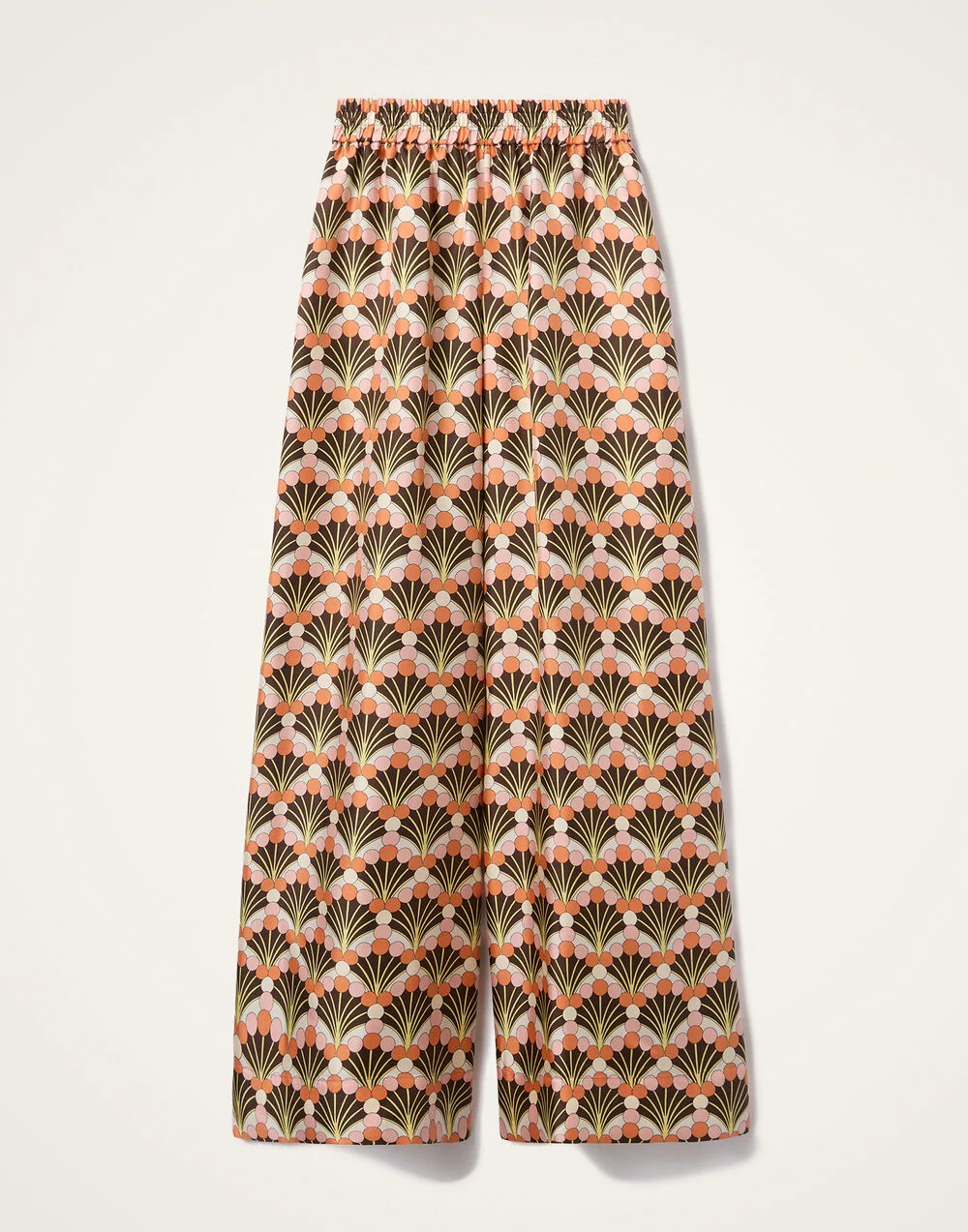 We cannot take credit for inventing the Palazzo Pant silhouette, but we will take credit for making them cool again. These trousers sit on the waist and fall flared, with a wide, breezy fit through the legs – like a skirt, but with the comfort of pants. Crafted in our woven silk twill from the shoes of Lake Como, this sophisticated Florette print pair is prime for sauntering along the Riviera this summer paired with a white tee or the matching Make an Exit top. Details & Fit - Garment fit: oversized - Silk twill - Elasticated waist - Concealed side pockets - Wide cut - 100% Silk - Unlined - Made in Italy - Garment length: 110cm