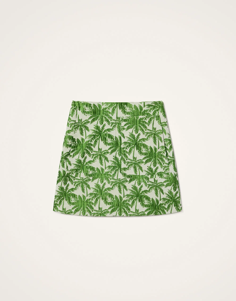 Bentornata, bella Mini! We’re bringing back one of our absolute faves, injecting even more maximalism into our timeless Mini Skirt. With an A-line shape and retro patch pocket, this piece is a year-round staple (yes we said year-round) - short, sweet and super petite friendly. Done in matelasse jacquard in our sunny Tropicana print for an upscale take on beachside chic, it’s extra luxe with one of our Bombers or cropped jackets. Details & Fit - Jacquard - Mid-thigh hem - Petite friendly - Patch Pocket - A-line shape - Garment length: 47cm - 100% Made in Italy - Composition: 44% Acetate 33% Viscose 22% Polyester 1% Elastane - The model is 178 cm / 5′ 10″ tall and wears a size S