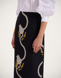 Not your librarian's pencil skirt. In our heart-pumping LDJ prints this baby is a bonafide mood-booster. Sitting low on your hips, it hems about the calf and has a slight flare for easy strolling. We’ve crafted it in our Italian wool cady, perfect for heading from the office to aperitivo hour in autumn or thrown over tights in winter. Pair with a mis-matched Boxy Shirt for a cute pattern clash and call it an outfit, ladies. Details & Fit - Wool cady - Hits approx mid-calf - Sits low on the waist - Slight cut with a slight A-line for ease of movement - Contrast lining - 100% Made in Italy - Composition: 76% Wool 24% Polyamide - The model is 180 cm / 5′ 11″ tall and wears a size S