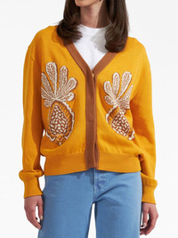 Pineapple-print cardigan La DoubleJ enhances this wool cardigan with its signature pineapple motif. Cut to a slouchy silhouette, the piece is elevated with contrasting ribbed trims. Highlights - Light orange - Cotton - Knitted construction - Signature pineapple motif - V-neck - Long sleeves - Front button fastening - Ribbed trim Made in Italy Composition Cotton 100% Washing instructions Read Manufacturer Guidelines
