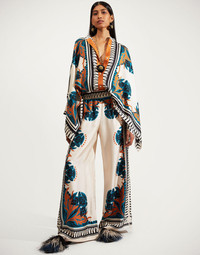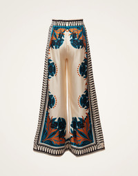 We cannot take credit for inventing the Palazzo Pant silhouette, but we will take credit for making them cool again. These trousers sit on the waist and fall flared, with a wide, breezy fit through the legs – like a skirt, but with the comfort of pants. With a woven texture and a lustrous hint of shine, they're made in our fluid silk twill from Lake Como and arrive in this stunning print expertly placed by hand. Details & Fit - Silk twill from Lake Como - Elasticated waist - Concealed side pockets - Wide cut - 100% Made in Italy - Composition: 100% Silk - Garment length: 106cm