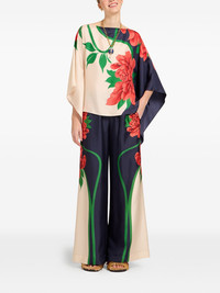 placed floral trousers Highlights - We cannot take credit for inventing the palazzo pant silhouette, but we will take credit for making them - Cool - again. these trousers sit on the waist and fall flared, with a wide, breezy fit through the legs – like a skirt, but with the comfort of pants. with a woven texture and a lustrous hint of shine, they're made in our fluid silk twill from lake como. botanist beings will adore this queen peony print, placed by hand and a super elevated addition to your work-to-weekend wardrobe. - Blue - Floral print - Elasticated waistband - Wide leg Made in Italy Composition Silk 100% Washing instructions Read Manufacturer Guidelines