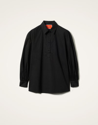 Not all shirts are created equal, friend. Enter the Poet Shirt, with its voluminous sleeves, pleats in the back and romantic cut, it’s a bonafide where-did-you-get-that number. A tent shape that looks great on all shapes and sizes, it’s made from our crispy cotton poplin and super versatile for daytime or evening in matte black. Eye-catching left loose but beautiful tucked into pants, too. Details & Fit - Cotton poplin - Placket with buttons that finishes mid-body - Button cuff - Generous cut - Pull-on - 100% Made In Italy - Composition: 100% Cotton - Garment length: 65cm