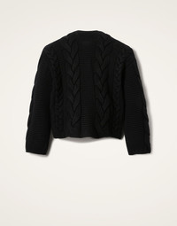 A chunky cropped cardigan crafted from a cashmere-merino blend? Sign us up, sister. With thick braids down the front and sleeves, this extra special statement piece will have you aching for sweater weather even in high summer. And yeah, we added gems along it for a little extra Italian opulence - can you blame us? Just look at this beauty! Details & Fit - Cropped cardigan - Chunky knit braids - Gem embellishments - 100% made in Italy - Composition: 10%Cashmere 40%Merino Wool 25%Viscose 25%Nylon