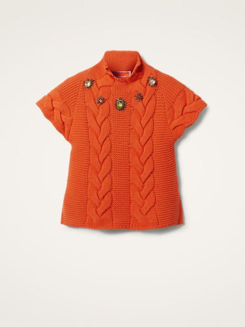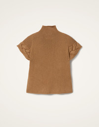 Just like our Portrait Sweater, this knit kit essential has chic, chunky braids down the front and across the shoulder, but this time with short sleeves and a romantic high neck. Made in a chunky merino mix with small slits at the side hem to give her a more waisted effect. Molto Milanese in elegant brown, we love it with jeans or over our La Favorita slip dress. Details & Fit - Form fitting knit top - Short sleeve - Chunky braids down front and on shoulder - 100% Made in Italy - Composition: 40%Wool 25%Viscose 25% Polyamide 10%Cashmere - The model is 180 cm / 5′ 11″ tall and wears a size S