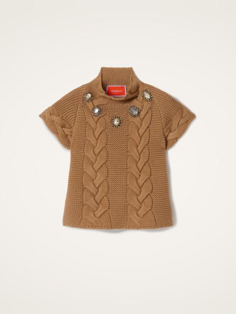Just like our Portrait Sweater, this knit kit essential has chic, chunky braids down the front and across the shoulder, but this time with short sleeves and a romantic high neck. Small slits at the side hem give her a more waisted effect. Adorable with jeans or over our La Favorita slip dress. Details & Fit - Form fitting knit top - Short sleeve - Chunky braids down front and on shoulder - 100% made in Italy - Composition: 10%Cashmere 40%Merino Wool 25%Viscose 25%Nylon - The model is 181 cm / 5′ 11.3″ tall and wears a size S