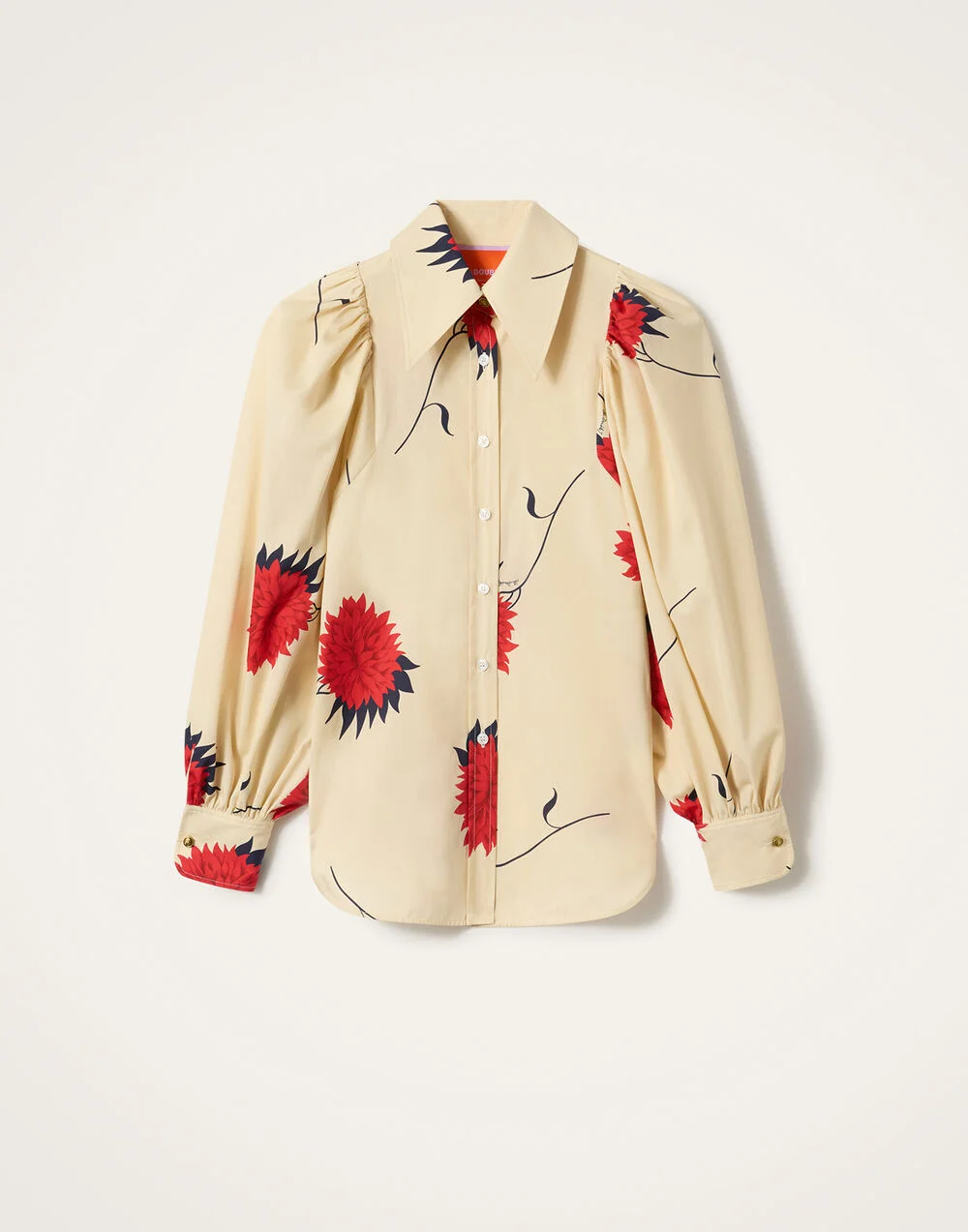 We’ve redefined classic shirting with the Pouf Shirt, a button-down beauty that brings a little high vibe volume to your wardrobe. Its playful sleeves transform a timeless silhouette into a statement piece, perfect for adding a touch of romantic drama to your everyday or dressing up for a chic occasion. And this all over print? Full fashionista fabulous. Details & Fit - Garment fit: Fitted - Cotton popeline - Puffy sleeves - 100% Cotton - Unlined - Made in Italy - Super fitted body - Perfect for layering - The model is 178 cm / 5′ 10″ tall and wears a size S