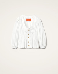 It’s the top we picture Daisy Edgar-Jones donning as she pops ‘round to Paul Mescal’s for tea (yes we ship this). Like our Primrose Dress, this seemingly simple shirt arrives with intricate hidden details, like structured boning through the waist to create an alluring hourglass, and elasticated cuffs so you can adjust the volume of the sleeves to your liking. She even arrives with an intricate scarab detail on the button, a symbol of growth and rebirth. Wear her with ripped jeans and sneakers or a silk skirt and stilettos - however you style her, she’s a springtime dream. Details & Fit - Boatneck shirt - Boning through waist - Elasticated cuffs - Scarab detail on button - Voluminous sleeves - 100% Made in Italy - Composition: 100% cotton - The model is 180 cm / 5′ 11″ tall and wears a size S