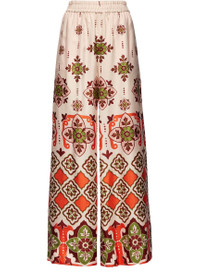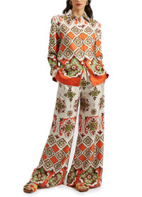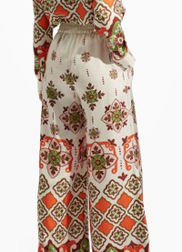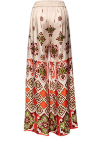 We cannot take credit for inventing the Palazzo Pant silhouette, but we will take credit for making them cool again. This silk-twill pair sit on the waist and fall flared, with a wide, breezy fit through the legs - like a skirt, but with the comfort of pants. DESCRIPTION - Elasticated-waist pants - Multicolored print - All-over print - Loose fit DETAILS AND CARE MATERIAL: 100% Silk COLOR: partenope COUNTRY OF MANUFACTURE: Italy PRODUCT CODE: LDJWRF73MU8DZAAA08
