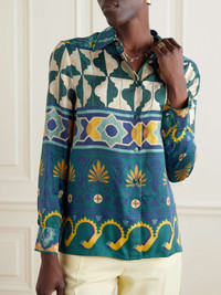 EDITORS'NOTES La DoubleJ's maximalist prints and carefully considered color palettes draw plenty of attention. This shirt is decorated with a pattern resembling mosaic tiles. It's made from silk-twill for a relaxed fit and has a neat collar and buttoned cuffs. SIZE & FIT Model measurements: - Fits true to size, take your normal size - Designed for a slightly loose fit - Lightweight, non-stretchy fabric - Model is 177cm/ 5'10" and is wearing a size Small - Bust: 79cm/ 31" - Waist: 61cm/ 24" - Hip: 89cm/ 35" DETAILS & CARE - Multicolored silk-twill - Button fastenings through front - Dry clean - Designer color: Casareale