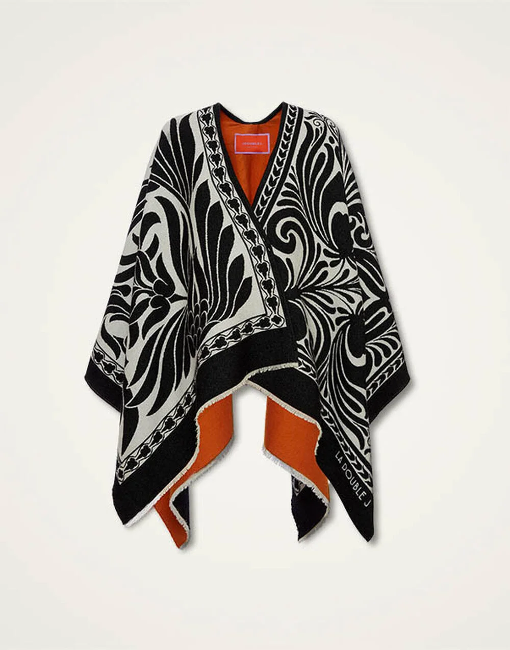 Hell to the yes, how do you get your hands on one of these, we hear you say! One for all you divine beings out there, this super warm wool-felt poncho features a hand placed black and white in house print, with a vibrant contrast solid hue inside. It's super special. Keep it handy for meditation moments, aeroplanes or chic nights out. Cocoon up and let the good vibrations flow! Details & Fit - Blanket wrap - Hand-placed black and white print - 100% Made in Italy - Composition: 100% Wool