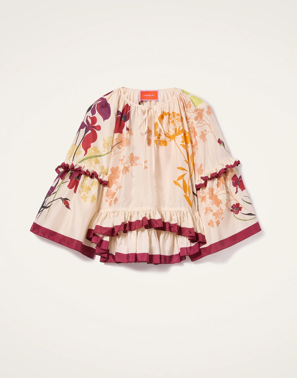 Just like the name suggests, this beauty was built for dolce vita daydreams. This super romantic shape comes in sumptuous silk voile - diaphanous and dramatic, she pairs beautifully with slinky city bottoms or jeans for a print perfect primavera look. Details & Fit - Silk voile - long sleeve blouse - Composition: 100% silk - The model is 177 cm / 5′ 9.7″ tall and wears a size S