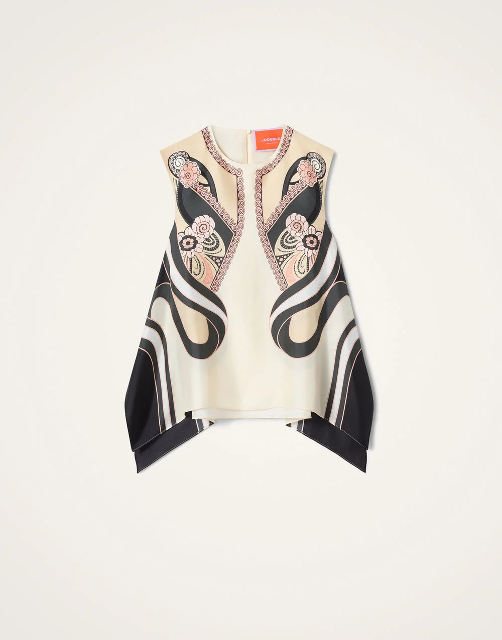 Crafted from our butteriest Italian silk twill, The San Carlo Top starts at the shoulders in a classic tank cut, before flowing into a romantic scarf train that floats dramatically behind you as you sashay through the trattoria. In this hand-placed Ambrosia print, she’s an endlessly versatile piece; classic with tailored trousers, extra special with the matching Palazzo Pants. Details & Fit - Garment fit: regular - Silk twill - Tank top cut through shoulders - Irregular high-low scarf hem - Placed print - 100% Silk - Unlined - Made in Italy - The model is 177 cm / 5′ 9.7″ tall and wears a size S