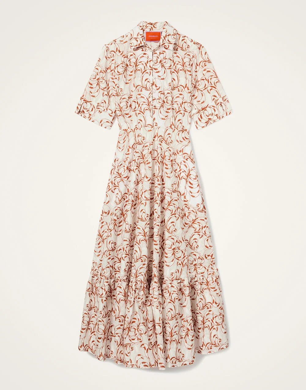 The “meet-cute” dress of our dreams, the San Pietro is a twist on a classic silhouette to feature a chic mandarin-style collar, covered buttons to the waist and a flouncy, two-tiered skirt. Crafted from intricate embroidered Italian cotton, this stunner is much more special than your standard summer shirtdress. Details & Fit - Embroidered cotton - Mandarin collar - Covered buttons to waist - Cuffed short sleeve - Two tiered skirt - 100% Made in Italy - Composition: 60% Polyester 40% Cotton - The model is 178 cm / 5′ 10″ tall and wears a size S