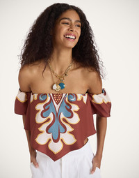 We’re bringing back the handkerchief top, and mamma mia have we made her magic. Crafted from Italian silk with a perfectly placed in-house print, she can be worn on or off the shoulder. Wear her with high waisted denim for midsummer days in the city or with the matching Sand Dollar Shorts for warm weather whimsy. Details & Fit - Silk handkerchief top - Placed print - Off or on the shoulder - Made in Italy - Composition: 100% silk - The model is 177 cm / 5′ 9.7″ tall and wears a size S