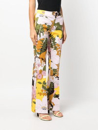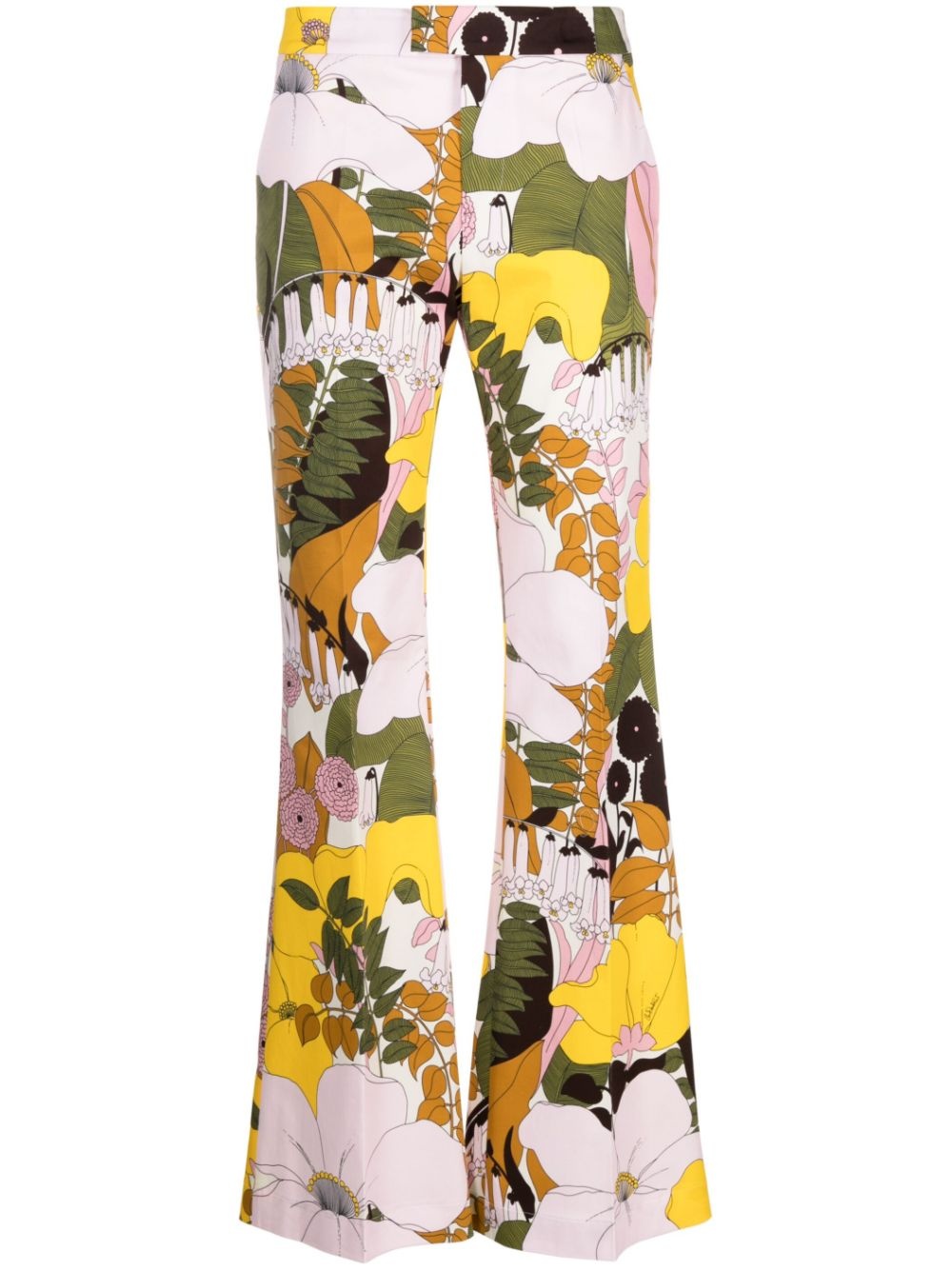 Saturday Night flared trousers Made from stretch cotton, these trousers by La DoubleJ capture the label's penchant for joyful designs. Cut to a slim fit, they showcase a flared silhouette decorated with the exclusive Big Flower print in shades of pink, yellow and green. Highlights - Light pink/yellow/fern green - Stretch-cotton - All-over floral print - Mid-rise - Concealed front fastening - Two side slit pockets - Two rear welt pockets - Flared Composition Cotton 97%, Elastane 3% SIZE & FIT Model measurements Height 5 ft 10 in(1.79 m) Bust/Chest 31.5 in(80 cm) Hips 35.4 in(90 cm) Waist 24.4 in(62 cm) FittingInformation Designed with a bootcut leg, these trousers allow for a close fit at the waist and with an unrestricted, comfortable fit and additional room at the calves Made from a midweight stretch fabric, this piece offers elasticity and flexibility when worn This piece fits true to size – take your usual size