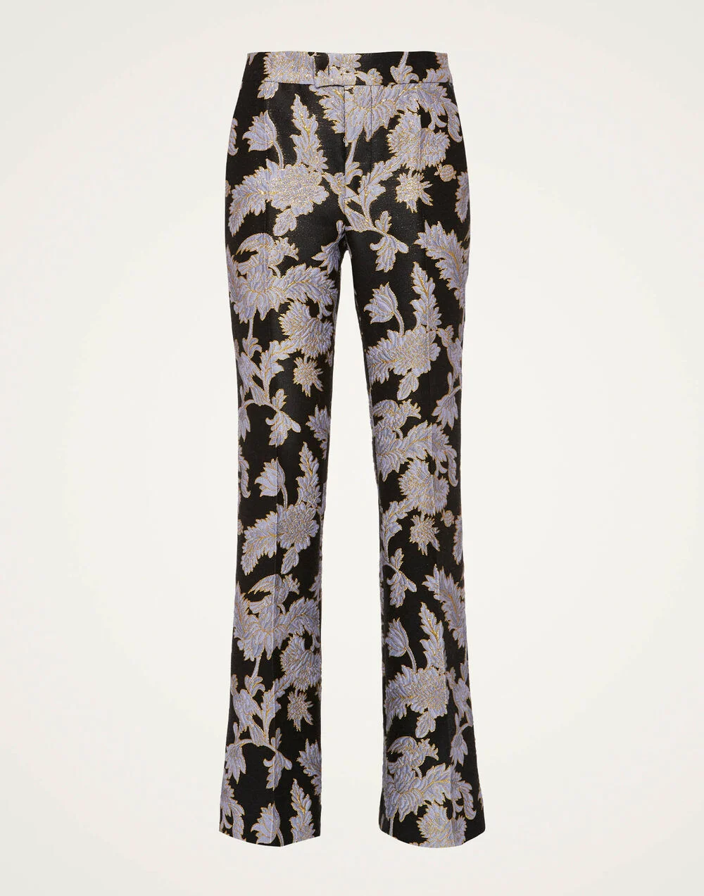And now, for a pair of pants that is going to make your butt look a million bucks! Sitting comfortably on the hips, these bootcut trousers are super flattering on legs of all ages and arrive in our juicy jacquard in this Lark print. Utterly gorgeous worn with the matching Boy Shirt for a modern and maximalist wedding look, equally great with your cashmere crewneck for work. Details & Fit - Jacquard - Bootcut - Pockets - Fly fastening - Hand-placed print - 100% Made in Italy - Composition:42% Polyester 22% Wool 22% Acrylic 8% Other Fibers 6% Silk - The model is 180 cm / 5′ 11″ tall and wears a size S