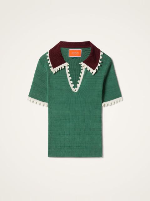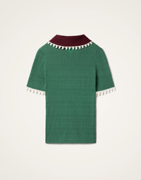 Our elevated take on an everyday classic, this stunning staple comes with an intricate contrast trim along the cuffs and collar. Our tip? Buy one in every color, amore. Details & Fit - Cashmere blend - Picket style edge along collar - Hits at hip - Made in Italy: - Composition: 85% Cotton 15% Cashmere - The model is 178 cm / 5′ 10″ tall and wears a size S