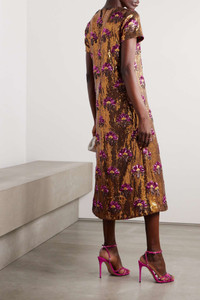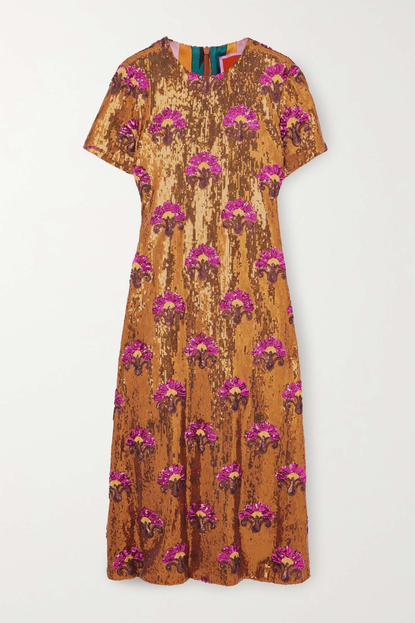 EDITORS'NOTES La DoubleJ’s ‘Swing’ dress is made from silk covered with sequins, perfect for parties and elegant events alike. It’s cut in a chic A-line silhouette that hits below the knees and moves prettily when you dance. SIZE & FIT - Fits true to size, however those who are between sizes should take the smaller size - Designed for a slightly loose fit - Lightweight, heavily embellished, non-stretchy fabric - Model is 177cm/ 5'10" and is wearing a size XSmall DETAILS & CARE - Gold silk - Concealed zip fastening at back - 100% silk - Dry clean
