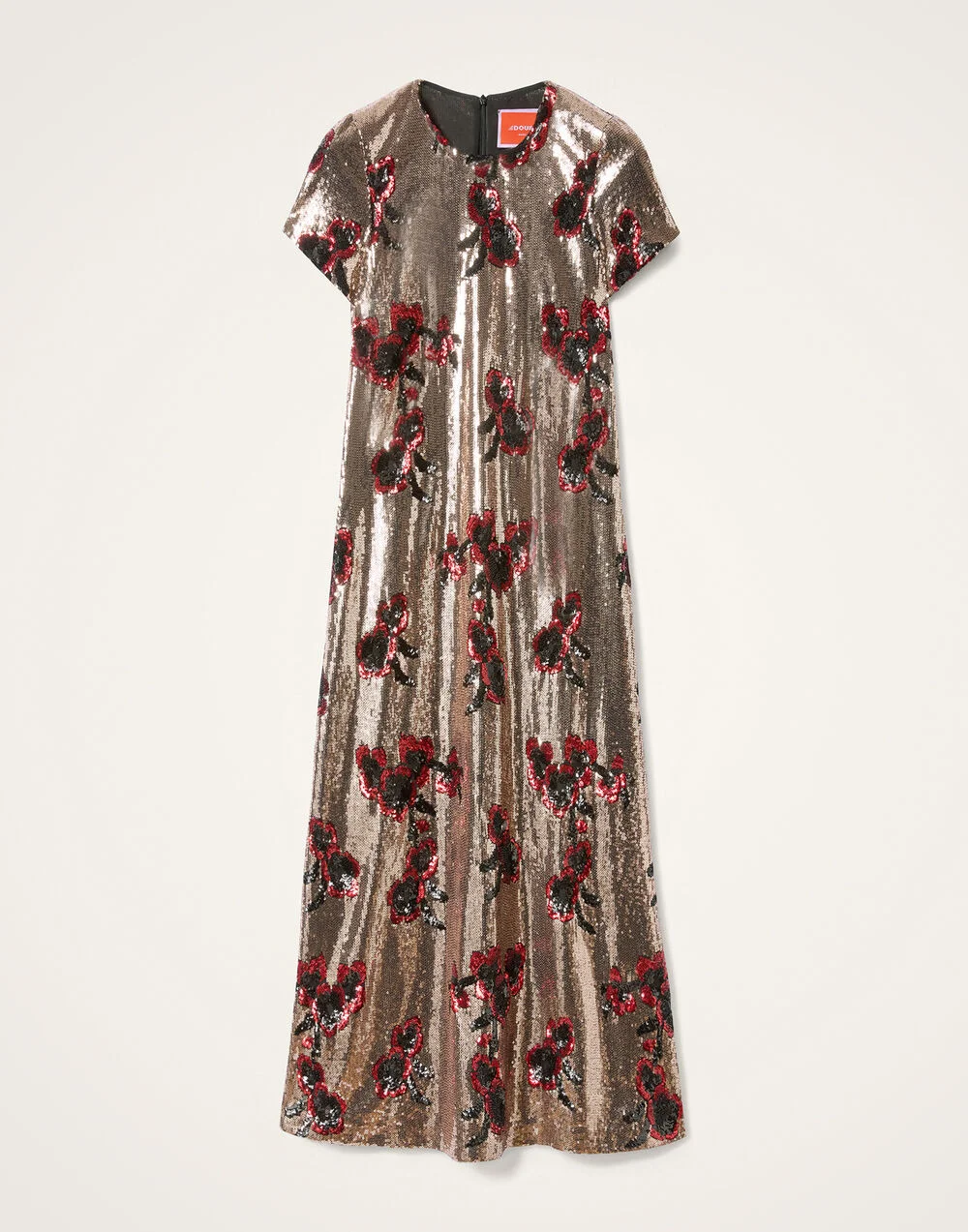 Nothing says party season like paillettes: da vero. This glorious Super Swing is destined for the dancefloor, part of our series that takes all your favorite Swing Dress details - same classic A-line shape, same slip shoulders - and amps them up in luxe textiles and intricate embroideries. Why it works? With its T-shirt sleeves and nonchalant cut, the Swing promises effortless elegance every time. Yep, even when it’s strewn with dozens of sequin primroses a la this glitterball beauty. We love it. Details & Fit - Paillettes - Slim in the shoulders, generous in the hips - Classic T-shirt silhouette - Falls into an A-line - Long maxi length - Hidden side slit pockets - Concealed back zipper - 100% Made in Italy - Composition: 100% Polyester - The model is 180 cm / 5′ 11″ tall and wears a size S