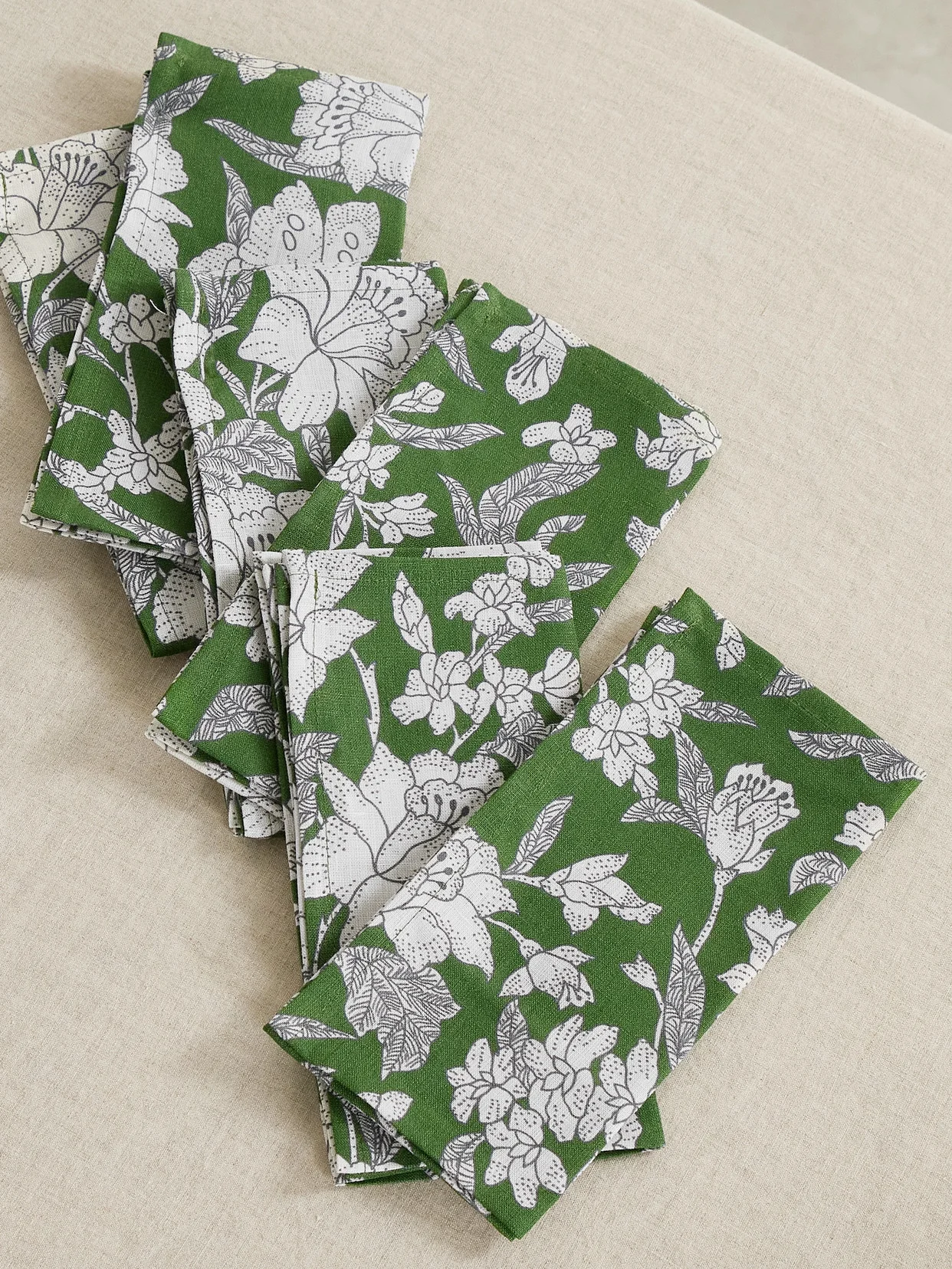 Set Of Six Floral-print Linen Napkins