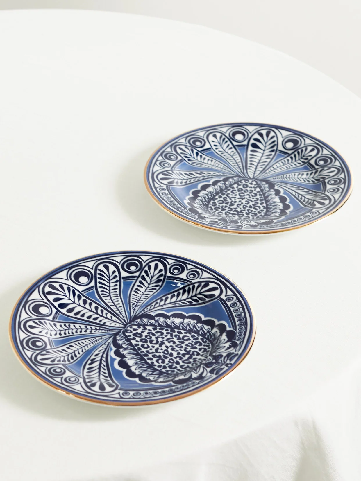 Delight your guests with a touch of the maximalist at your next dinner party with La DoubleJ's vibrant dessert plates. Made in collaboration with Italian porcelain greats Ancap, they're decorated with a vibrant pineapple-inspired print and are edged with a beautiful gold-plated trim. Mix and match them with the label's other collections.