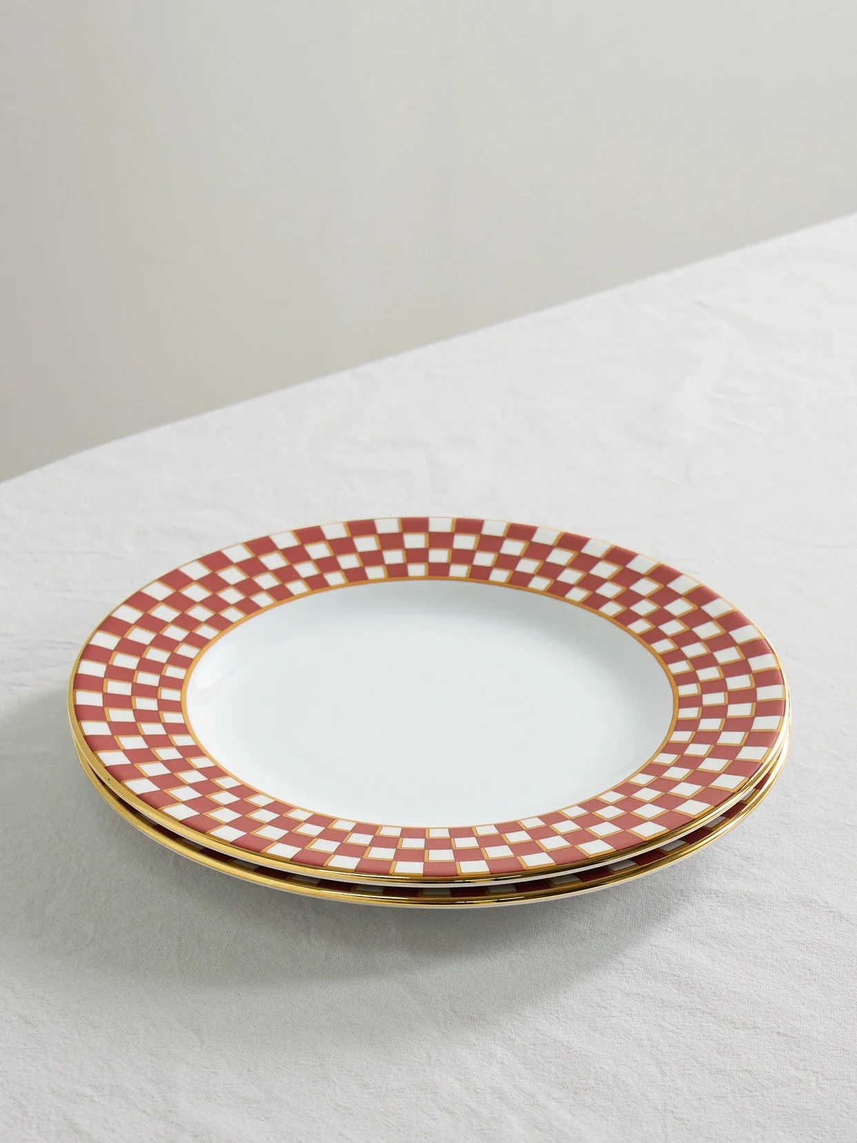 Set Of Two Gold-plated Porcelain Dinner Plates