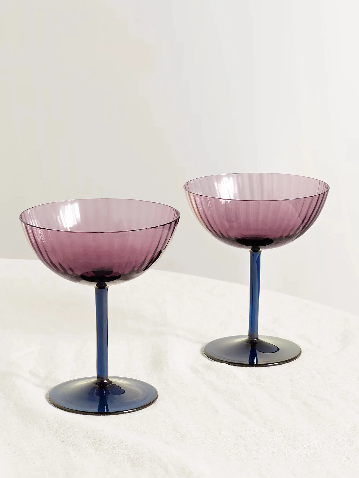 Sprinkling joy through your home is La DoubleJ's forte, as these champagne coupes attest. The duo has been hand-blown from Murano glass by notable Venetian house, Salviati. Fill them with something equally fun and sparkling.