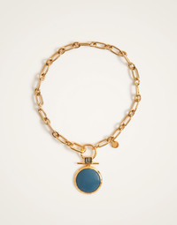 For us at La DoubleJ, jewels are not just accessories, but happiness-expanding tools. This striking Shen Loop Necklace is delivered with solid colored resin set in the center of the ancient Egyptian Shen Loop, a potent energetic symbol of eternal protection. The 3 vertical lines across the top bar represent the 3 realms: physical, energy and spirit, while the circle represents eternity. We love this item worn alone, hovering just above the heart to maximise its energetic, but it's just as majestic layered with our other joy-amplifying jewels. The Shen Loop is an Ancient Egyptian symbol of Eternal protection. The three spaces between the straight lines represent the 3 realms of the physical, the energy and the spirit. The Circle with enamel in high-vibration colours, represents eternity. Details & Fit - Chunky Chain with Enamel Shen Loop Pendant - 24K Gold Plated Brass - Composition: 100% brass - Made in Italy